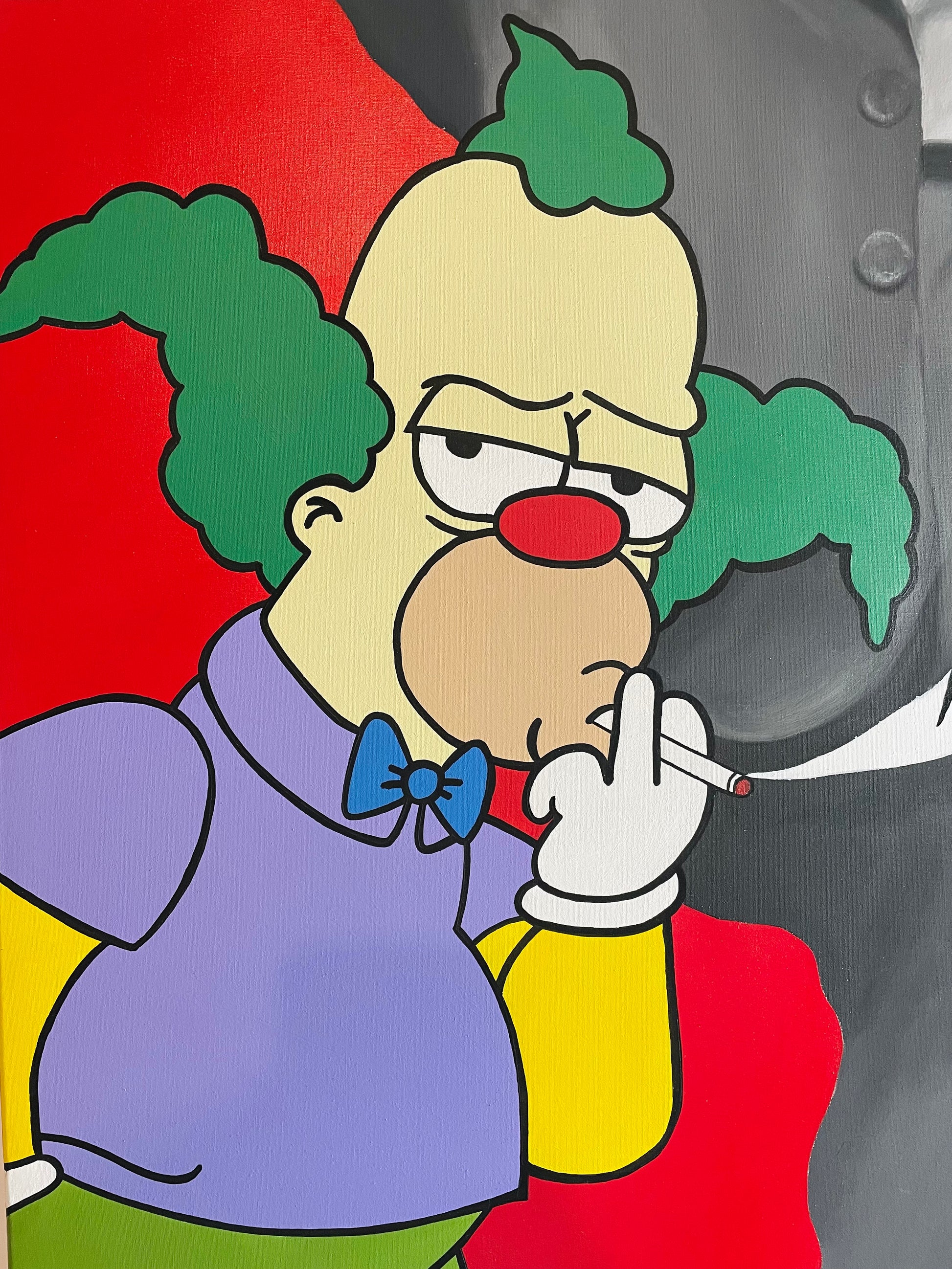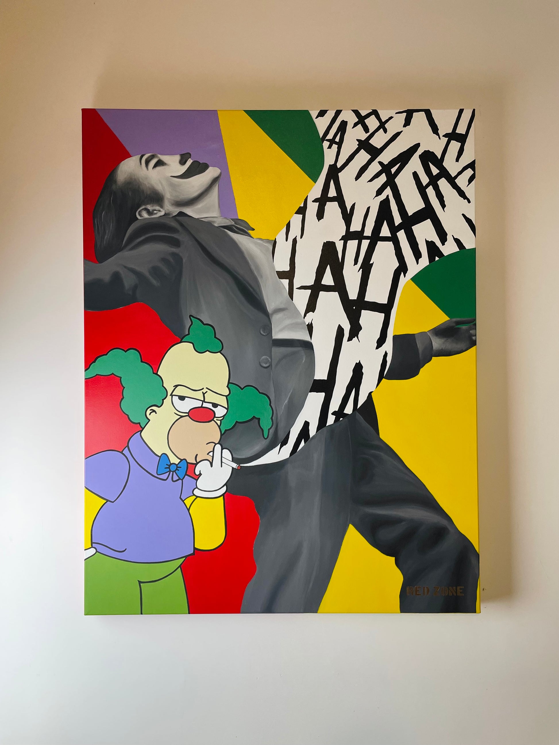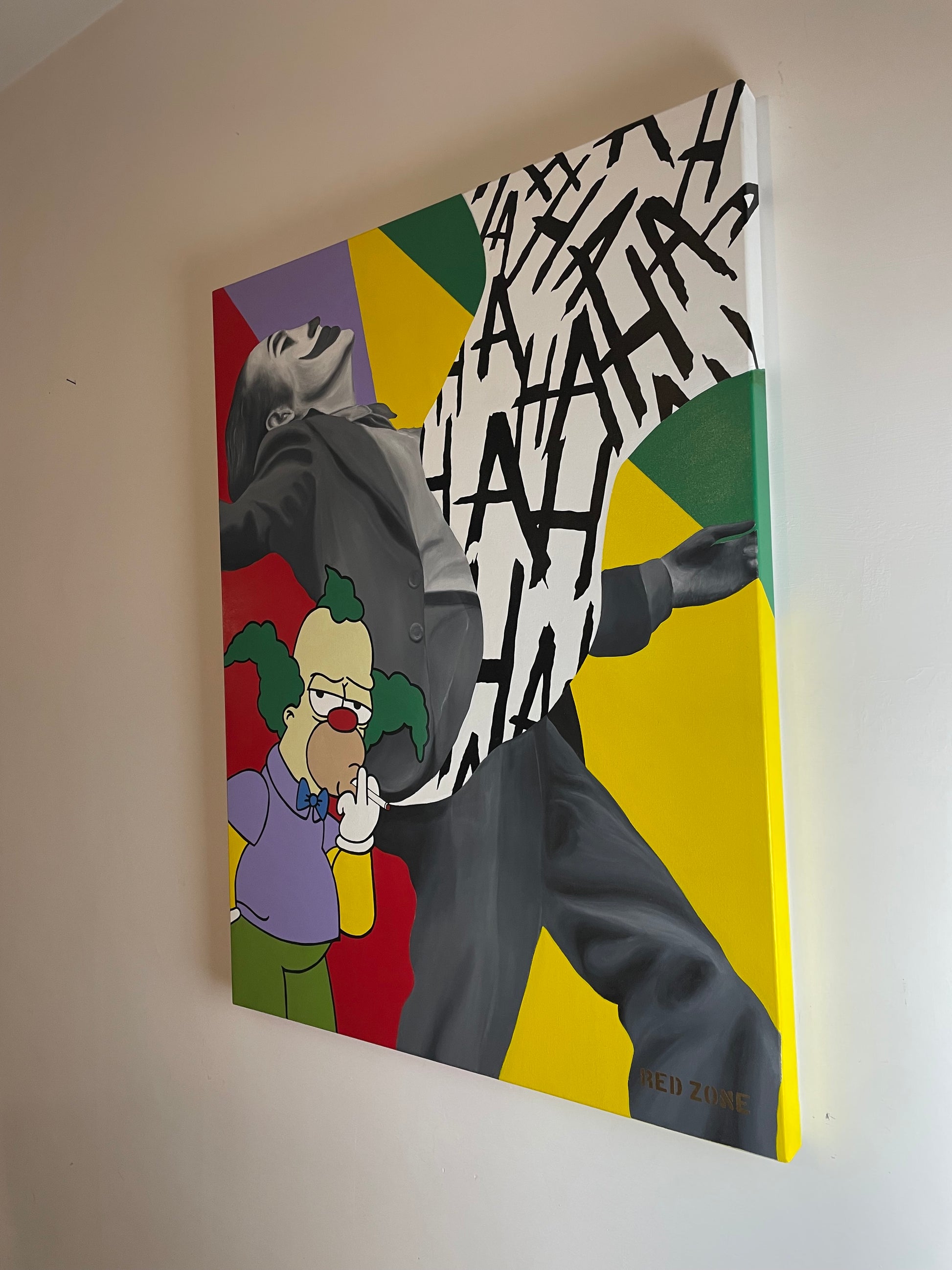 L’artista mescola il suo volto con l'esuberanza e la follia del Joker, dando vita a una fusione sorprendente di stili: l'espressione cartoonesca di Crusty si intreccia con l'intensità e l'irrazionalità del Joker, creando un contrasto visivo straordinario. La figura, intrisa di emozioni contrastanti, passa dal più puro delirio e euforia al tormento silenzioso, come una riflessione sulla condizione umana in tutte le sue sfumature più oscure e affascinanti.